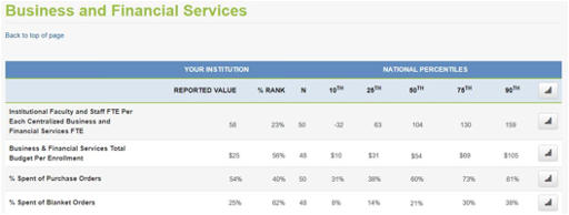Communicating the value of administrative services is more important now that ever before. Aministrative services benchmarks give those departments the standards of performance to compare departments within the insitution and to peers outside of the insitutions—all with the end goals to improve efficiency, institutional effectiveness, and student outcomes.