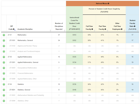 Cost & Productivity Project data are useful for staffing plans and decisions about faculty positions, for academic program planning and assessment, and for documentation of compliance for accreditation purposes. The unique advantage of Cost & Productivity Project data is its discipline-level unit of analysis.