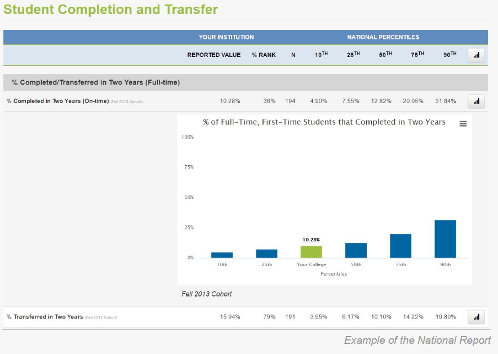 From persistence rates to distance learning outcomes, from student engagement to institutional effectiveness measures, from developmental success to student outcomes, the National Community College Benchmark Project (NCCBP) offers 150+ credit benchmarks that matter most to community colleges.